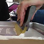 Well wikipedia.com defines it as ... “printing technique that uses a woven mesh to support an ink-blocking stencil. The attached stencil forms open areas of mesh that transfer ink or other printable materials which can be pressed through the mesh as a sharp-edged image onto a substrate. A fill blade or squeegee is moved across the screen stencil, forcing or pumping ink into the mesh openings for transfer by capillary action during the squeegee stroke. Basically, it is the process of using a stencil to apply ink onto another material.” |